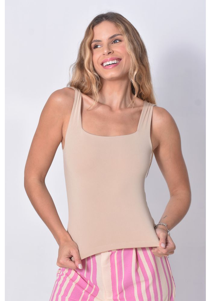 Uma peça essencial para quem busca conforto e estilo em um só look. Feita na nossa Malha Poderosa, que tem toque supermacio, boa sustentação e caimento que se ajusta bem ao corpo, essa peça é pura praticidade e conforto. O destaque fica por conta do design inteligente que permite usar dos dois lados, com decote quadrado na frente ou nas costas, garantindo duas opções em uma só blusa.