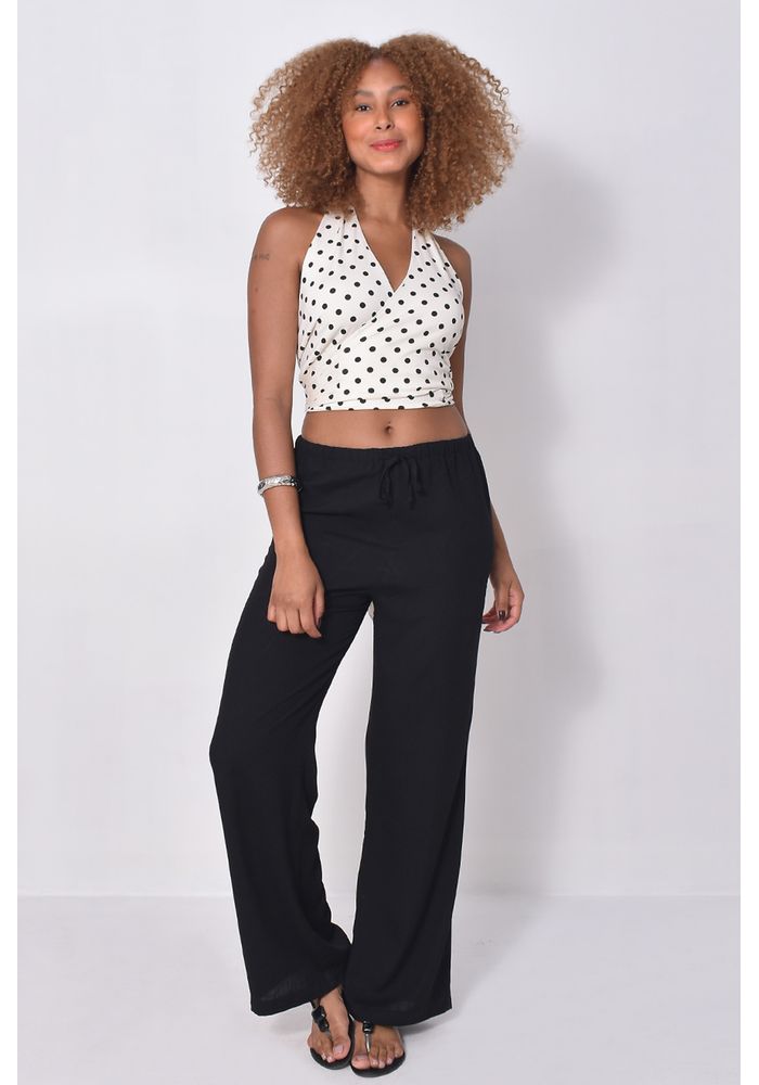 A Blusa Transpassada Poá é aquela peça que une charme e leveza em um só look e uma escolha perfeita para os dias de calor. Com estampa de poá nas cores preta e branca, modelagem transpassada e amarração nas costas, valoriza a silhueta com um caimento fluido e feminino.