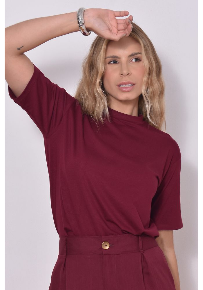 Clássica e indispensável, a T-shirt Básica é confeccionada em viscose leve e macia, garantindo conforto e versatilidade. Com modelagem soltinha e caimento perfeito, é a peça curinga para compor desde looks casuais até produções mais sofisticadas com acessórios.