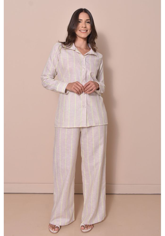 A Calça Reta em Linho Listrado é a escolha ideal para quem busca leveza, estilo e versatilidade no dia a dia. Confeccionada em tecido de linho, possui caimento fluido, cintura média com fechamento em botão e zíper, além de modelagem reta que alonga a silhueta. As listras delicadas trazem um toque moderno e atemporal, combinando perfeitamente com croppeds, camisas ou blazers.