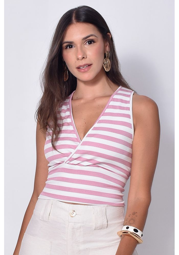 Cropped Ribana Listrada Decote Transpassado