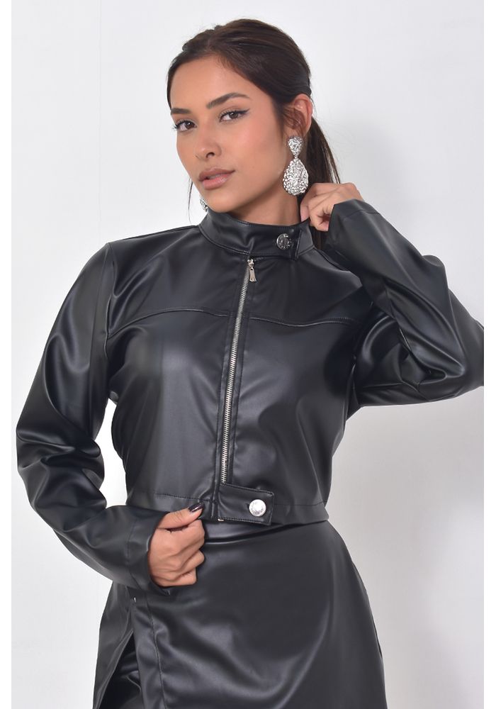 A jaqueta de couro ecológico com detalhe de botões é a peça-chave para compor looks cheios de personalidade. Com modelagem reta e acabamento impecável, ela oferece um visual sofisticado e urbano, ideal para diversas ocasiões. Apresenta um zíper frontal que permite usar a jaqueta aberta ou fechada, dependendo da proposta. Os detalhes de botões na gola e na barra adicionam um acabamento refinado. Combine com jeans para um look casual despojado, ou calças de alfaiataria para uma produção mais elaborada. É uma peça essencial que transita do dia para a noite com facilidade.
