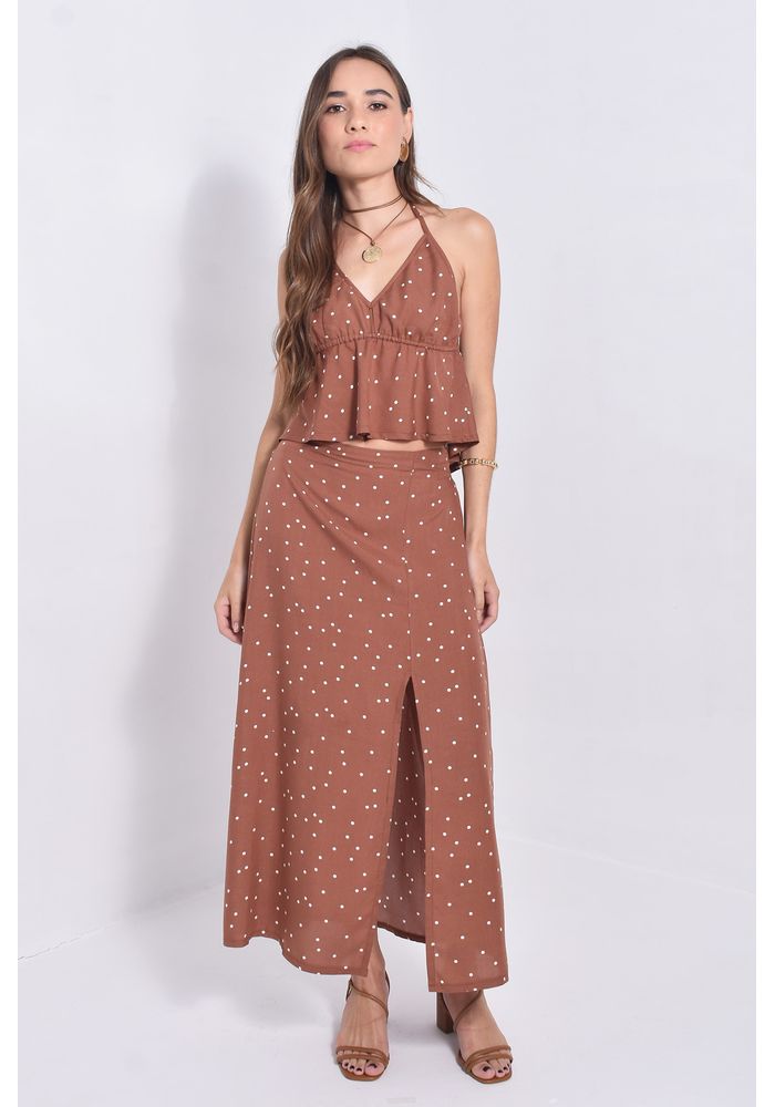 Promo Saia Midi Com Fenda Frontal Poá