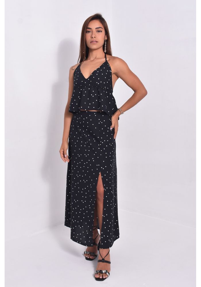 Saia Midi Com Fenda Frontal Poá