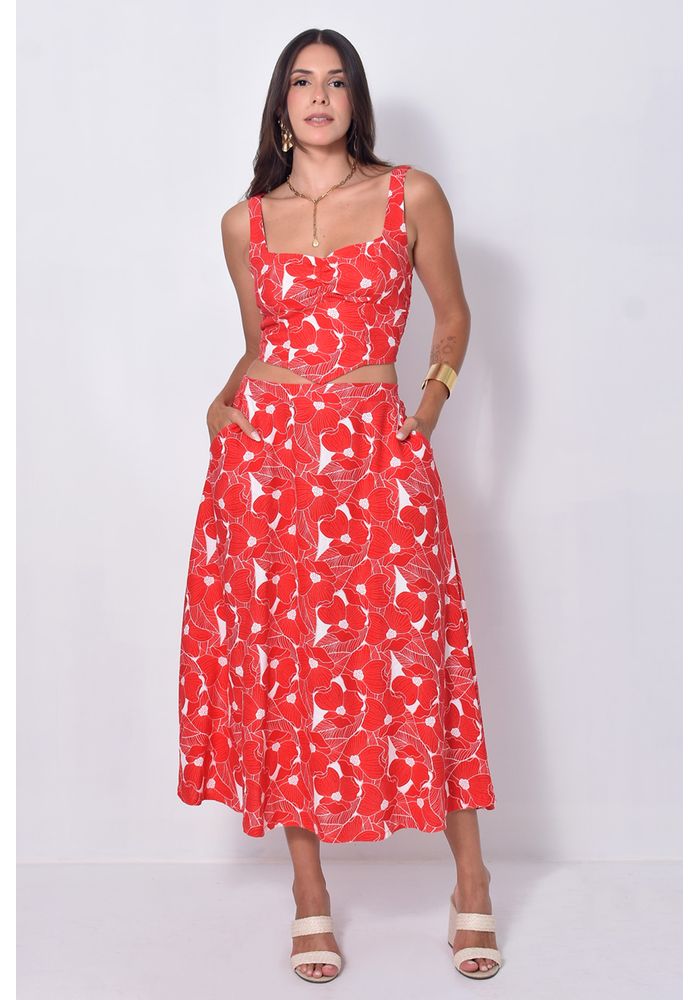 Leve e com um movimento delicioso, a saia midi chega com uma estampa vibrante que dá vida ao look no instante. A modelagem soltinha acompanha o corpo de um jeito confortável, enquanto os bolsos laterais trazem praticidade sem perder o charme. Fresquinha e fácil de combinar, é daquelas peças que deixam qualquer produção mais interessante com zero esforço.