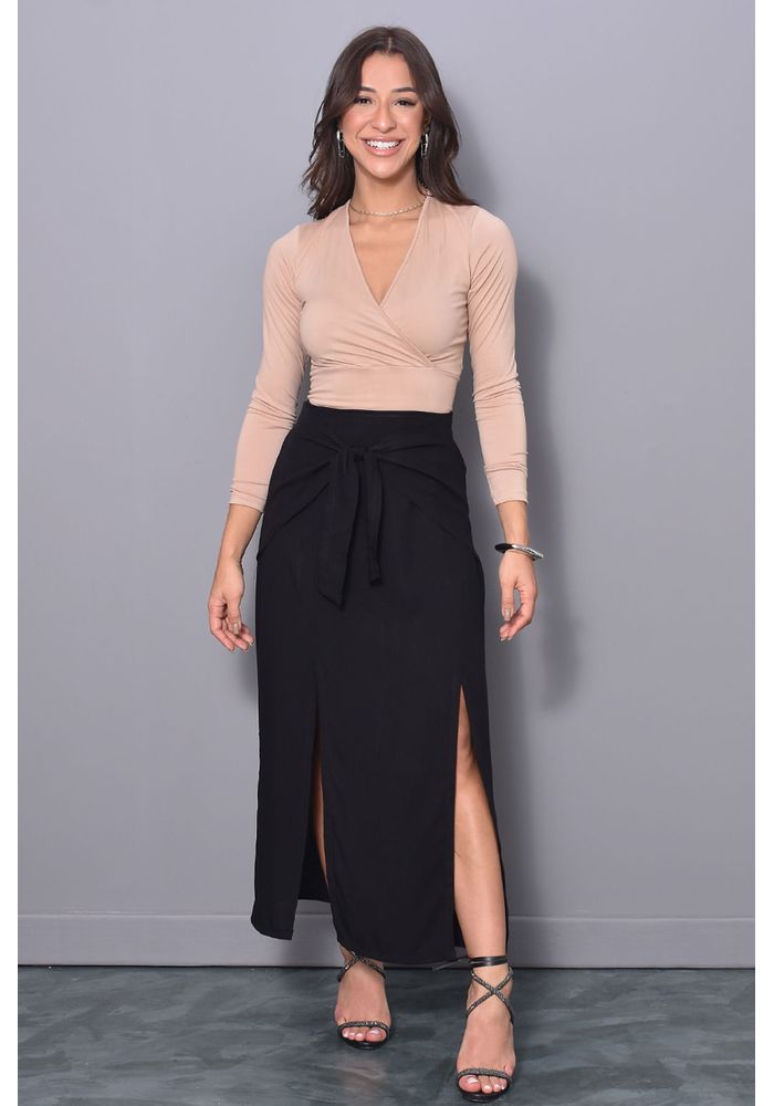A saia midi amarração frontal confeccionada em viscolinho apresenta um design versátil e elegante. Com comprimento midi, ela é perfeita para diversas ocasiões. O viscolinho oferece um caimento perfeito, além de ser leve e fresco. As fendas proporcionam movimento, fluidez e valorizam a silhueta. O grande destaque da peça é a amarração frontal na cintura. Esse detalhe permite ajustar a saia ao seu corpo, realçando a cintura e criando um efeito visual incrível.