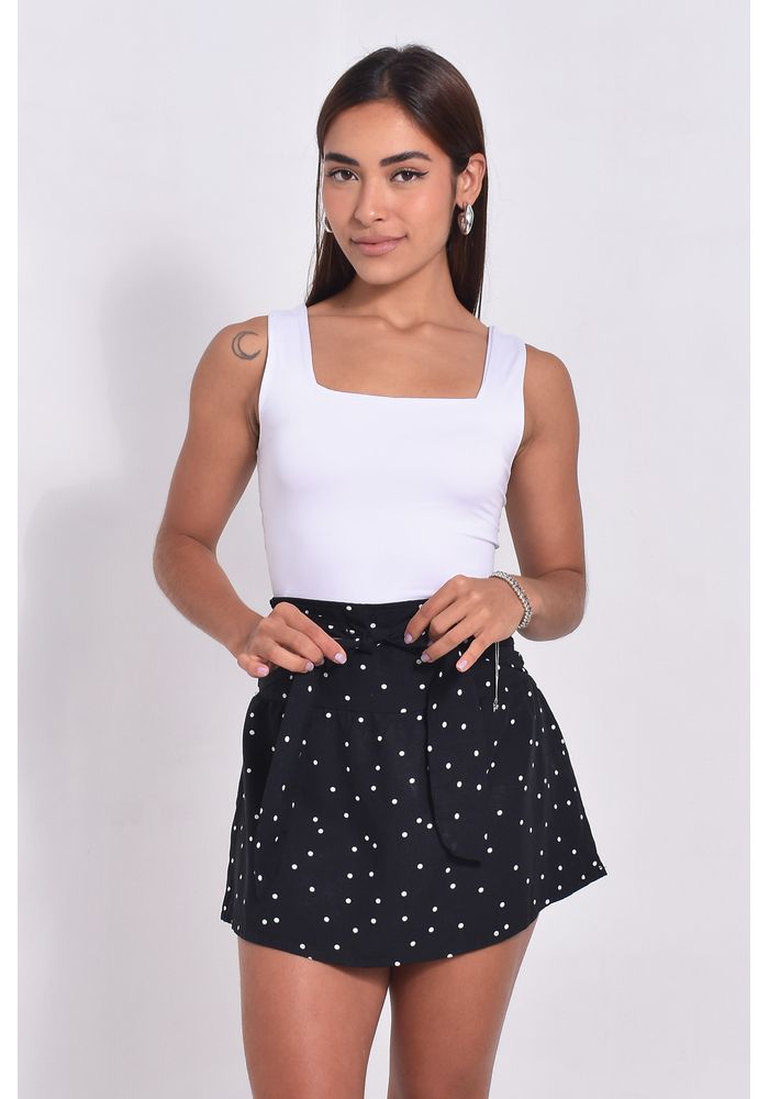 Clássico e cheio de charme, o short saia poá é aquela peça que transforma qualquer look. Sua modelagem soltinha traz leveza e conforto, enquanto o cós alto com amarração valoriza a cintura com um toque delicado. O detalhe transpassado na parte frontal cria o efeito de saia, adicionando feminilidade e movimento à produção.