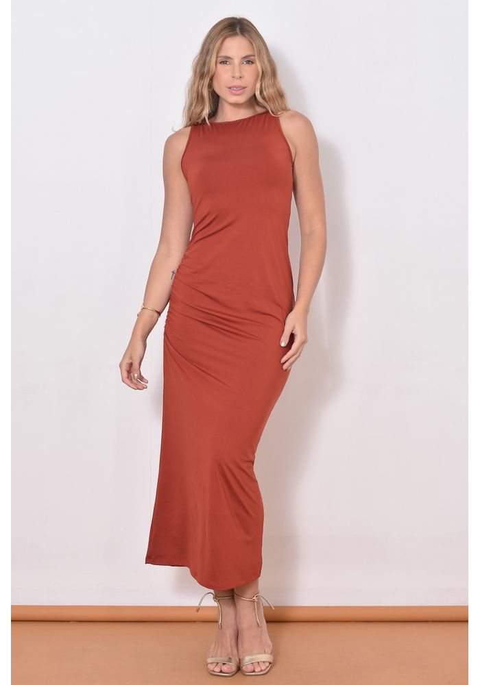 O vestido midi em malha lycra foi criado para valorizar a silhueta com modernidade e conforto. Seu tecido possui elasticidade que se ajusta ao corpo de forma impecável, garantindo caimento perfeito e liberdade de movimentos. O detalhe franzido lateral adiciona charme e sofisticação, criando um efeito visual que afina a cintura e realça a feminilidade. O comprimento midi equilibra elegância e praticidade, tornando a peça ideal tanto para o dia quanto para a noite. Versátil e estiloso, o vestido pode ser combinado com salto para um look mais sofisticado ou com tênis para uma proposta casual moderna.