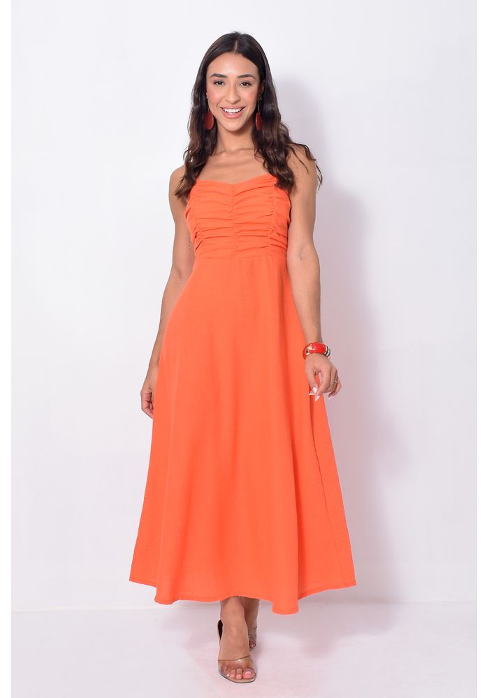 VESTIDO MIDI COM BUSTO FRANZIDO