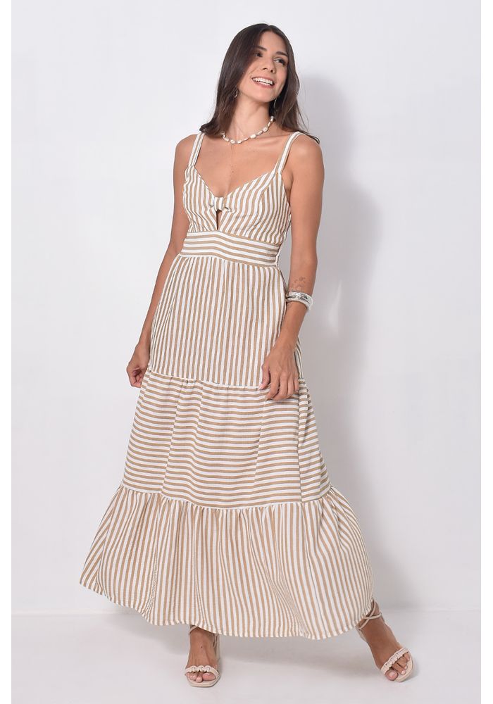 Um vestido leve e cheio de charme. Confeccionado em poliéster, um tecido prático, resistente e com ótimo caimento. O modelo tem alças finas, decote delicado e recortes que valorizam a silhueta, além da saia com camadas que traz movimento ao look. Uma peça versátil e confortável, ideal para usar durante o dia ou em produções mais arrumadas à noite.