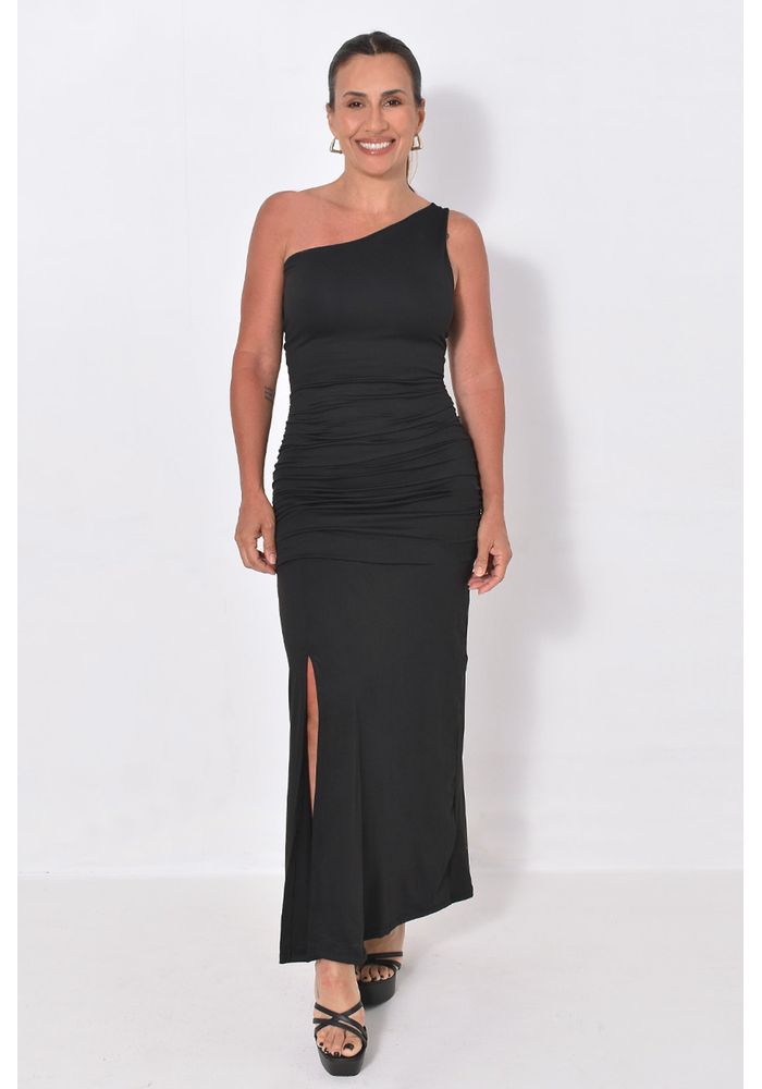 O vestido midi pala franzida é uma peça sofisticada e versátil que valoriza a silhueta com sua modelagem ajustada ao corpo e detalhe drapeado na cintura, proporcionando um caimento elegante e confortável. Com decote assimétrico de um ombro só e fenda frontal discreta, ele traz um toque moderno e feminino, ideal para produções que vão do jantar especial ao evento social.