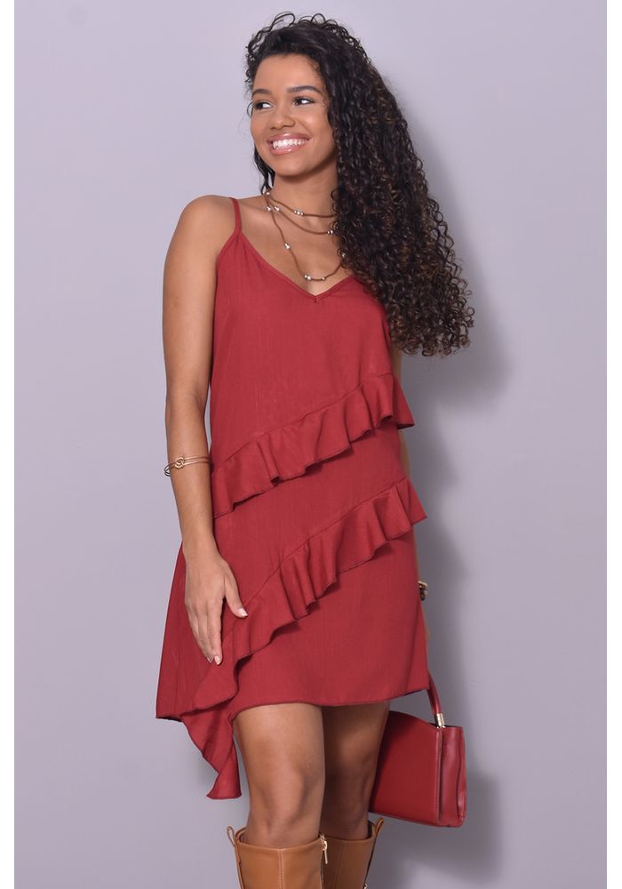 Vestido curto estampado de viscolinho com barra em babados. A estampa tropical apresenta contraste de palmeiras azuis sobre fundo branco, criando um contraste fresco e elegante. O decote em V ajuda a valorizar a região do colo, e você pode complementar o look com um colar delicado para destacar ainda mais a região. A saia com dupla camada de babados proporciona volume e leveza. O elástico na cintura ajuda a proporcionar um caimento perfeito.